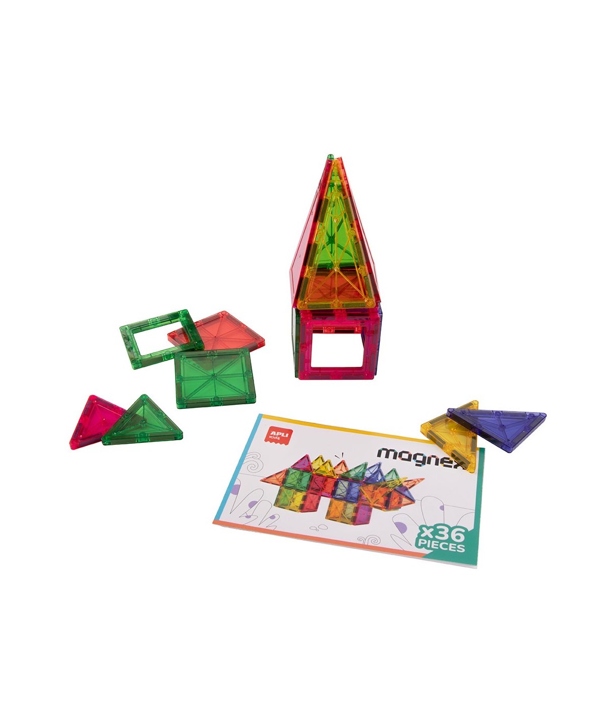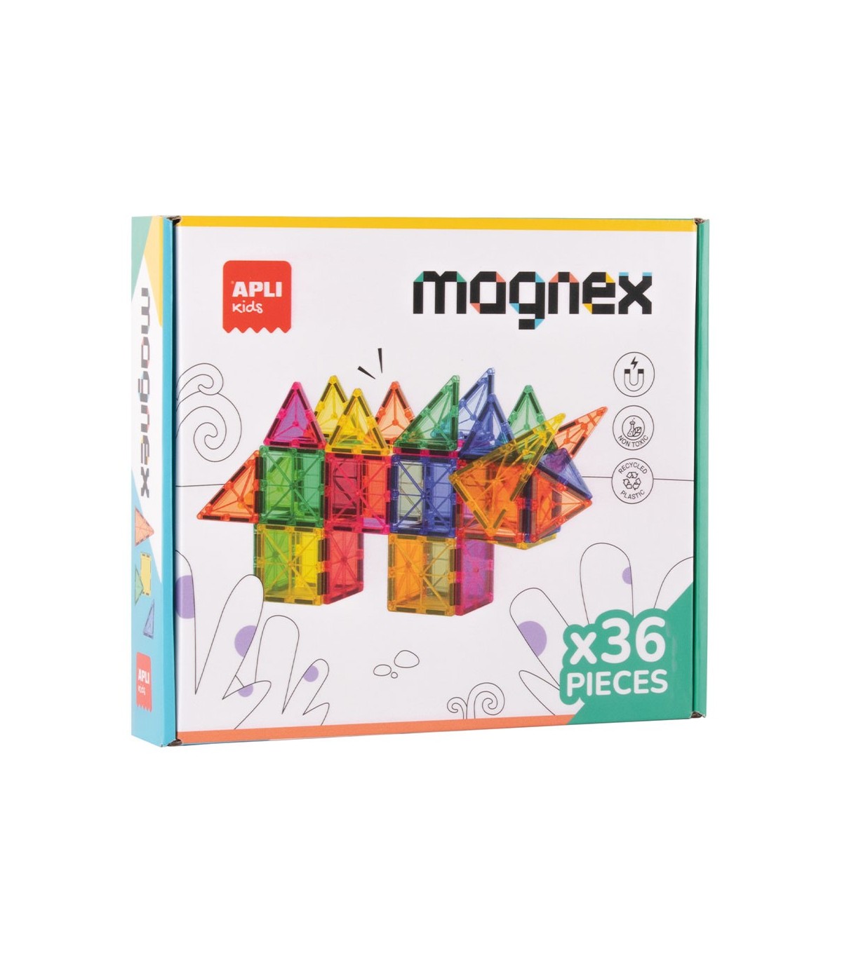 Con el set Magnex de 36 piezas, los niños y niñas podrán construir formas más variadas y desarrollar su imaginación de forma libre. Las piezas magnéticas geométricas se combinan para crear estructuras que estimulen el pensamiento espacial, la lógica y la creatividad.