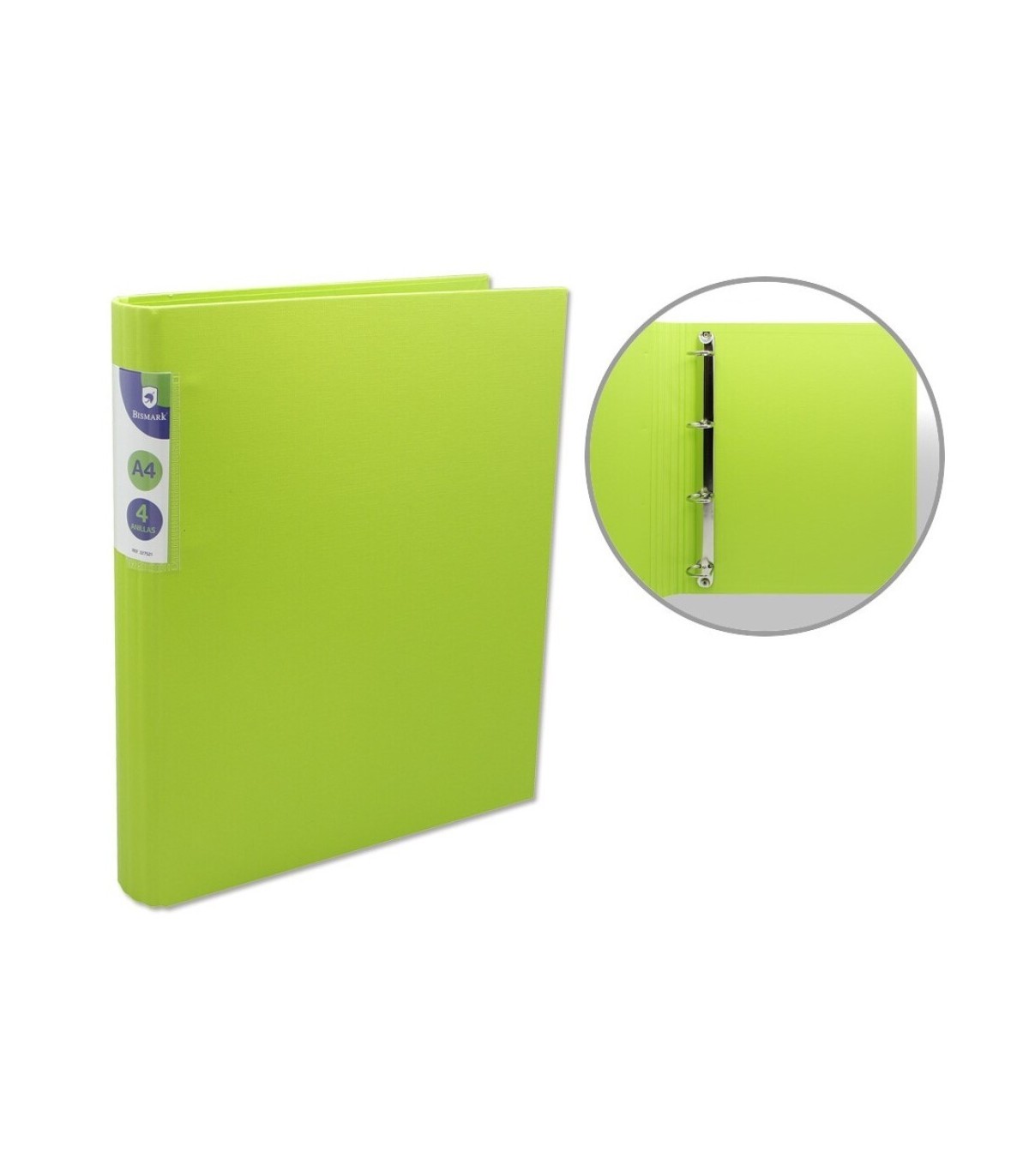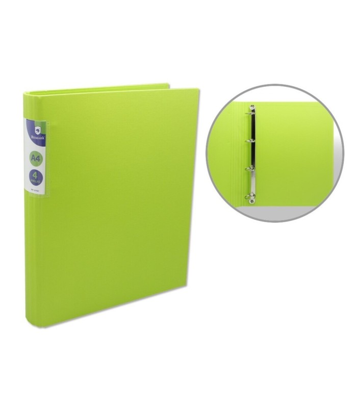 Carpeta archivador de 4 anillas Bismark verde light neón.