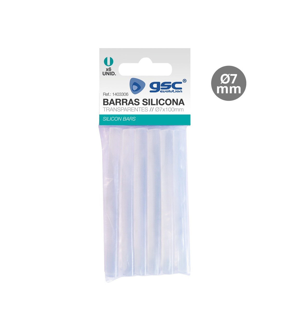 BARRAS DE SILICONA TRANSPARENTES GSC BOLSA 6 UNIDADES 7Ø x 100mm - SECADO RAPIDO