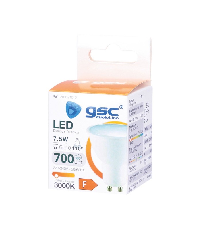 BOMBILLA LED GSC EVOLUTION GU10 7.5W LUZ CALIDA 3000K 700 LUMENES