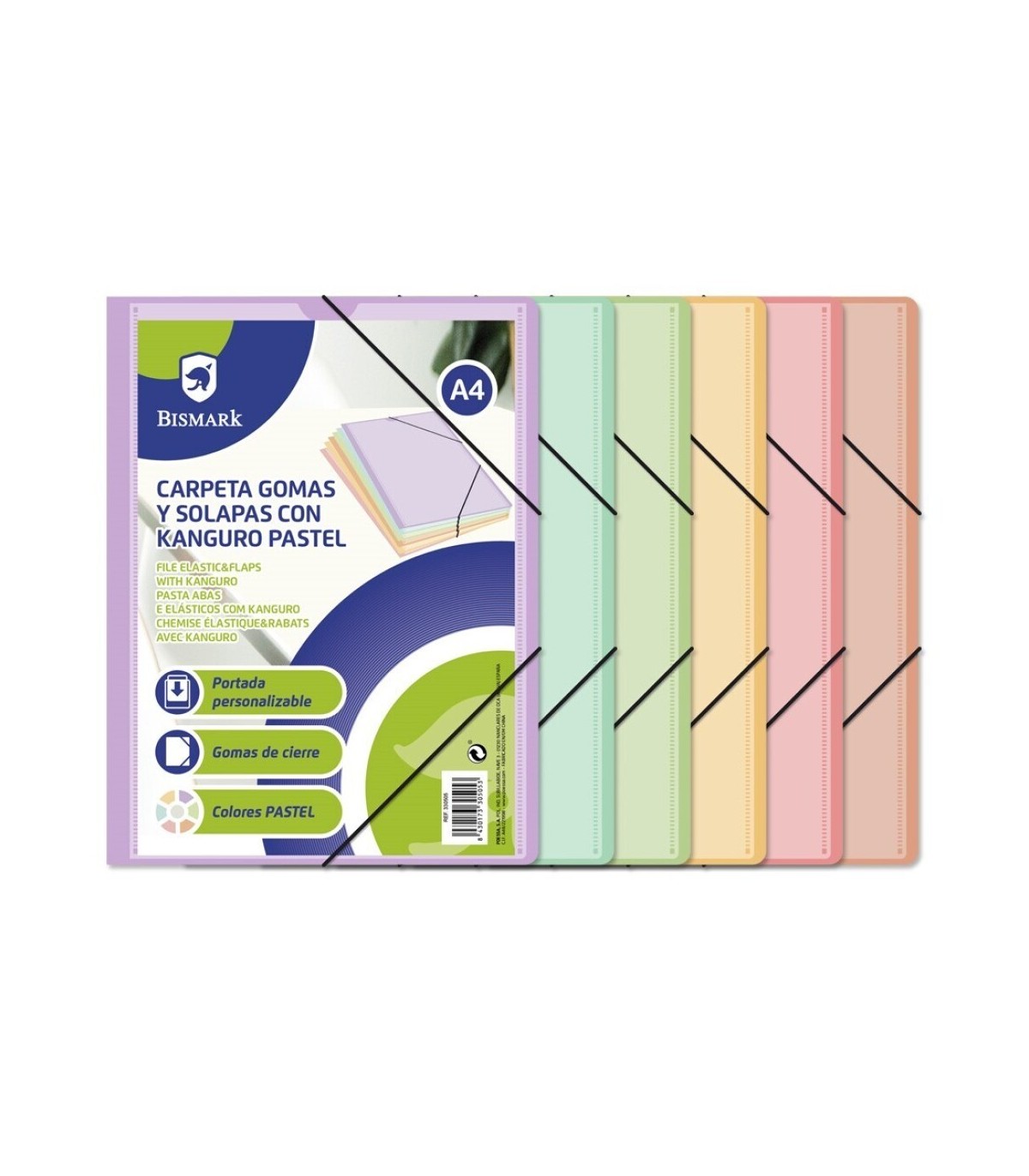 CARPETA GOMAS Y SOLAPA A4 CON KANGURO COLORES PASTEL SURTIDOS BISMARK