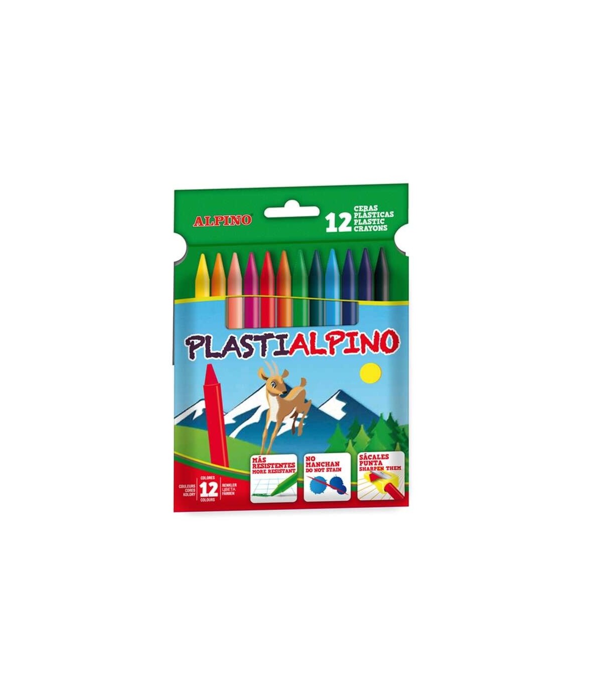 Las ceras PlastiAlpino son ceras plásticas para los más pequeños, el material es más resistente para evitar roturas y además no manchan. Son ideales para desarrollar la creatividad de los niños sin limites ya que el pintado es muy suave obteniendo colores brillantes que animan al niño a seguir con su creatividad.