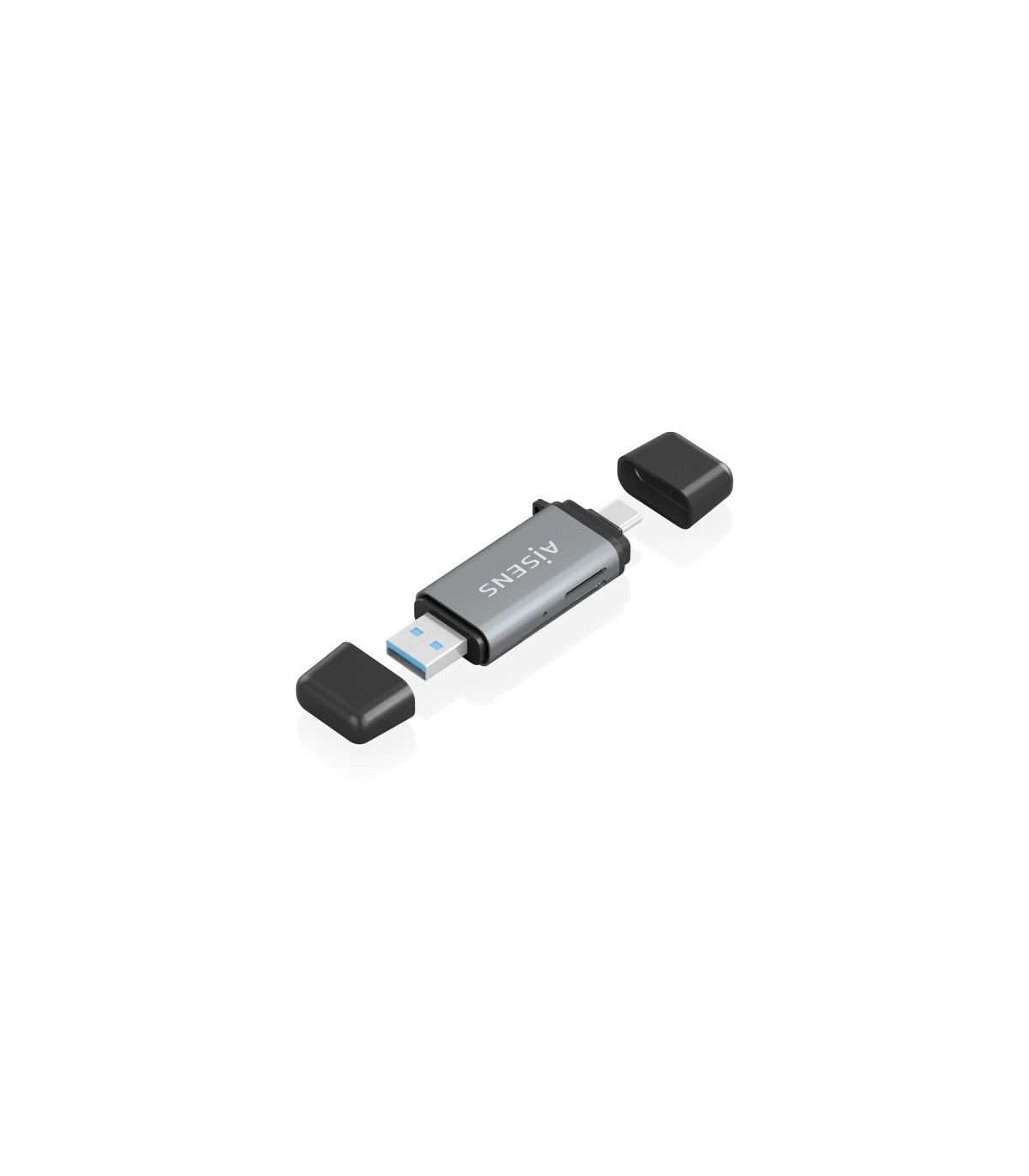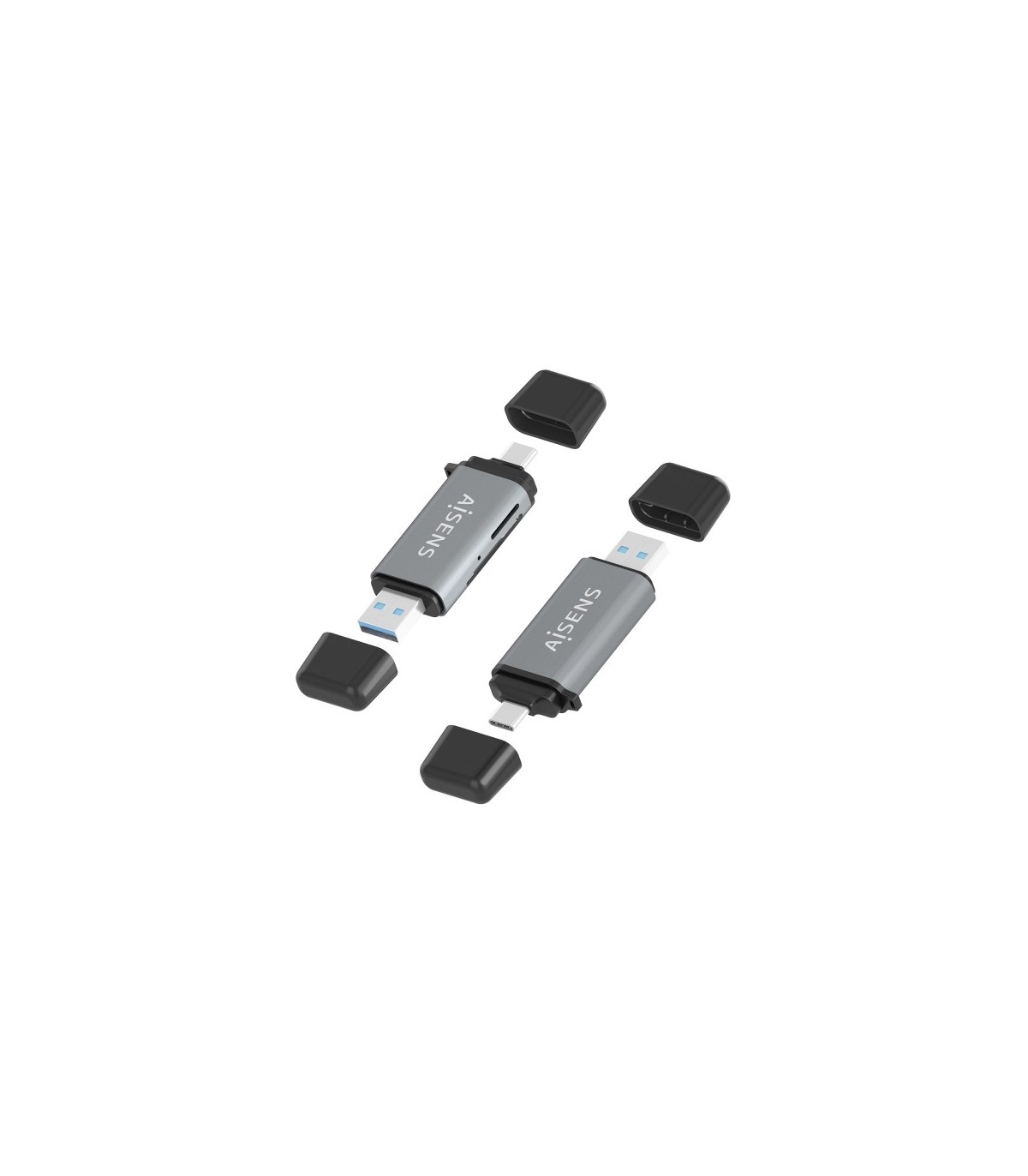 Aisens Lector de Tarjetas USB-A y USB-C 3.1 Gen1 - Compatible con SD, Micro SD, MMC, RS-MMC, MMC Micro - Color Gris