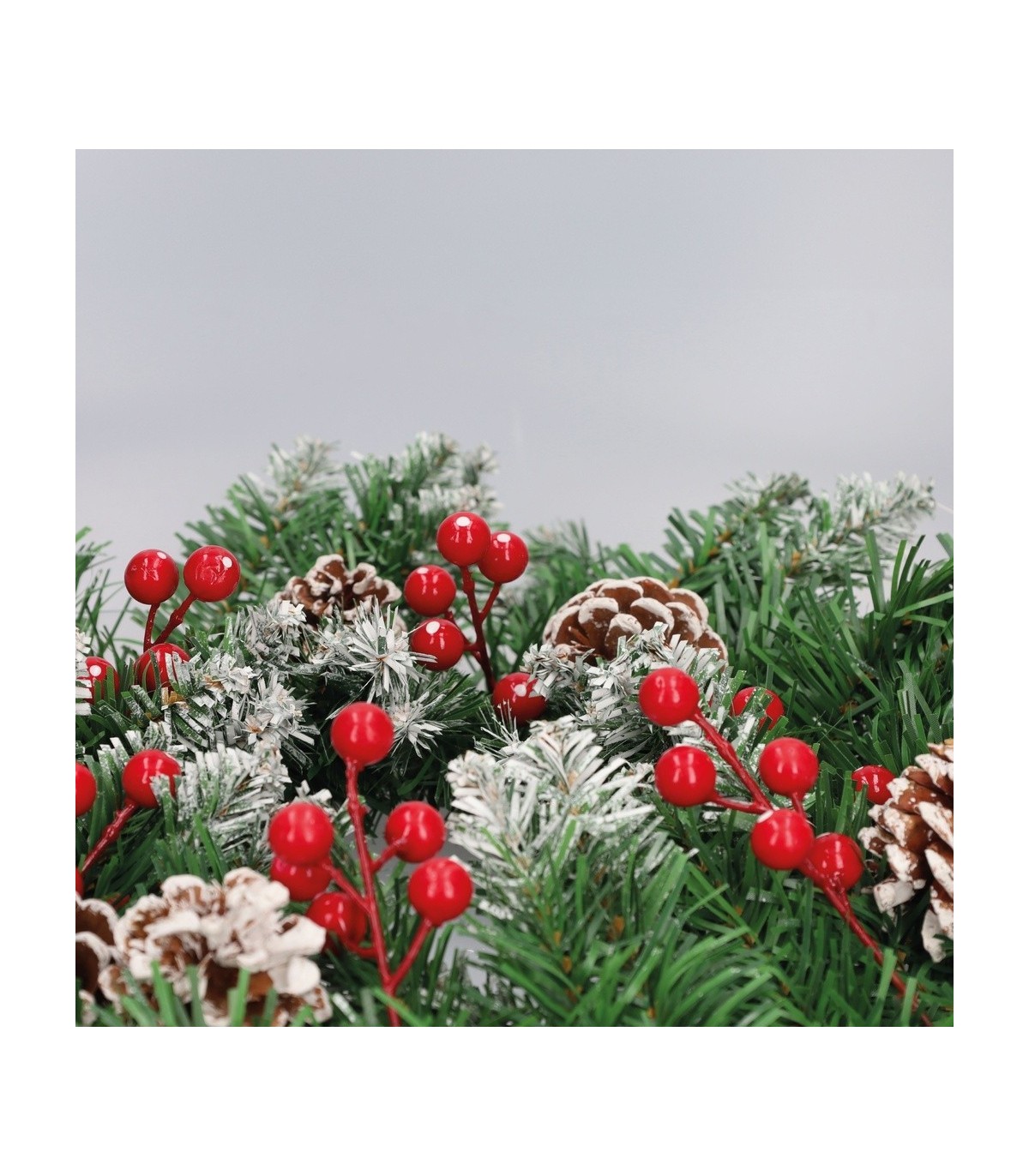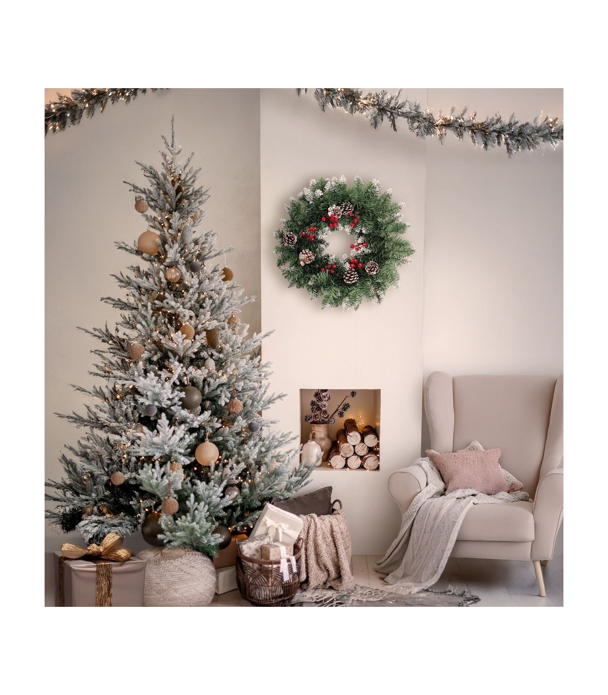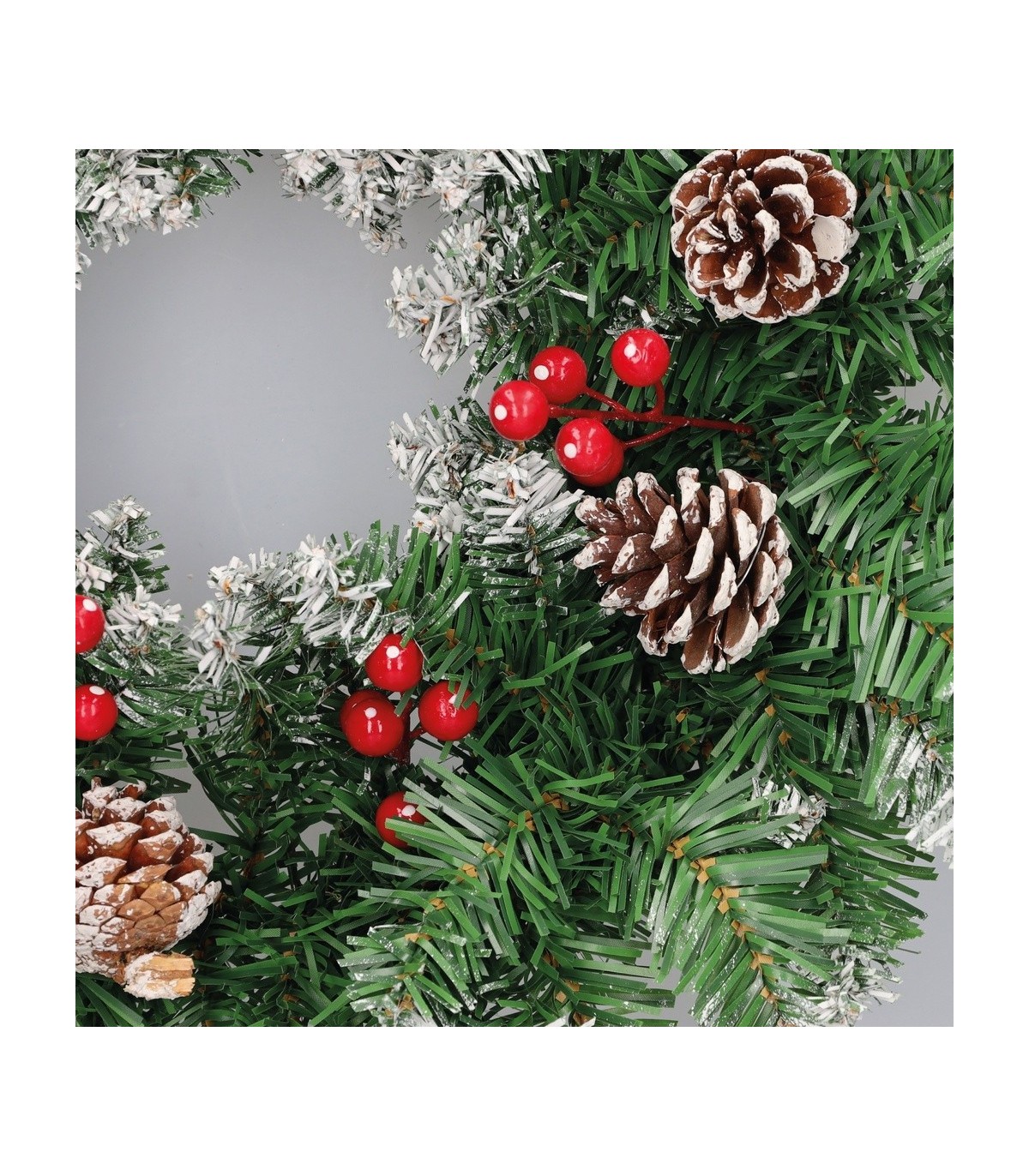 CORONA DE NAVIDAD EFECTO NIEVE CON ACEBO Y PIÑAS BALITI GSC