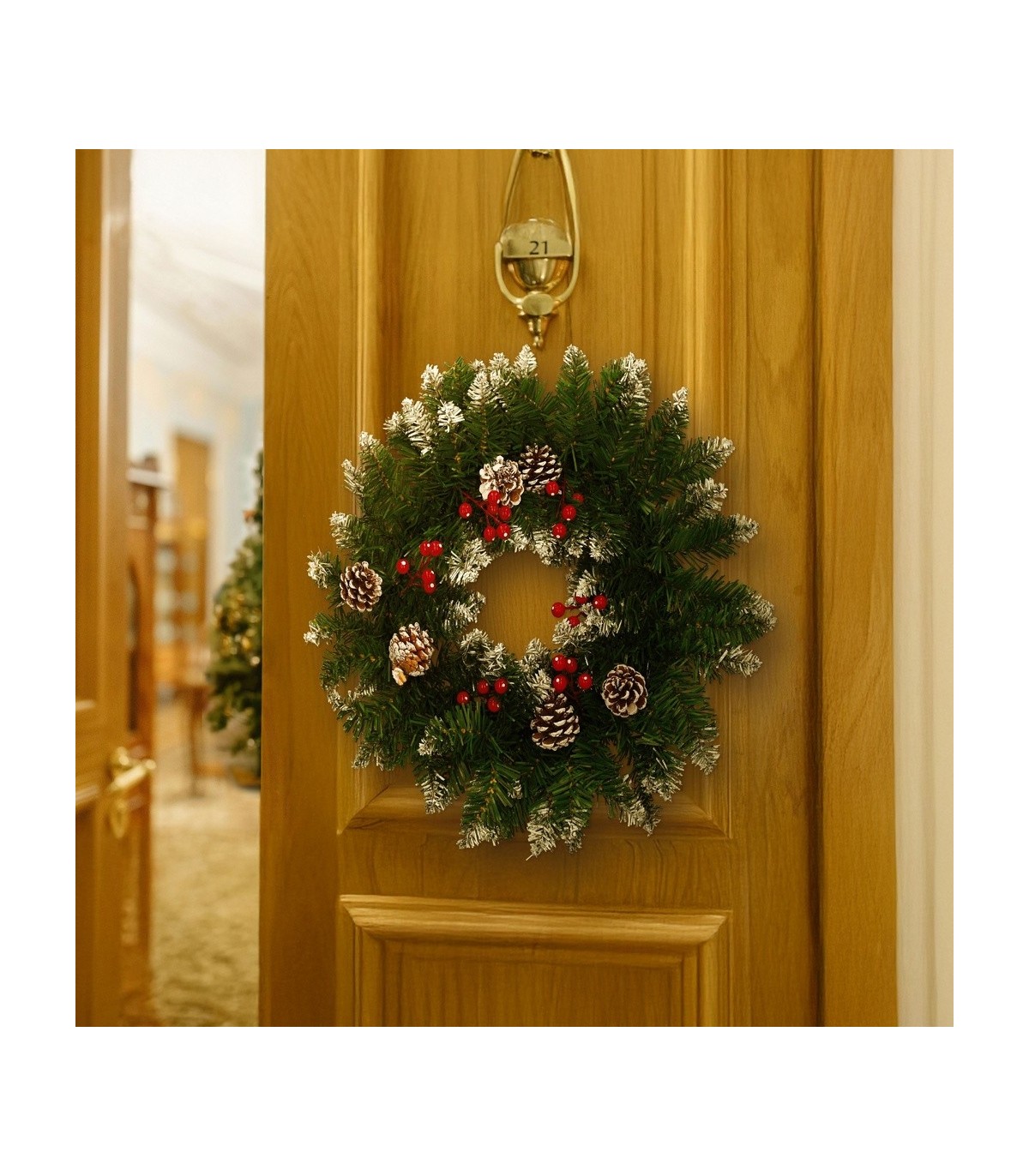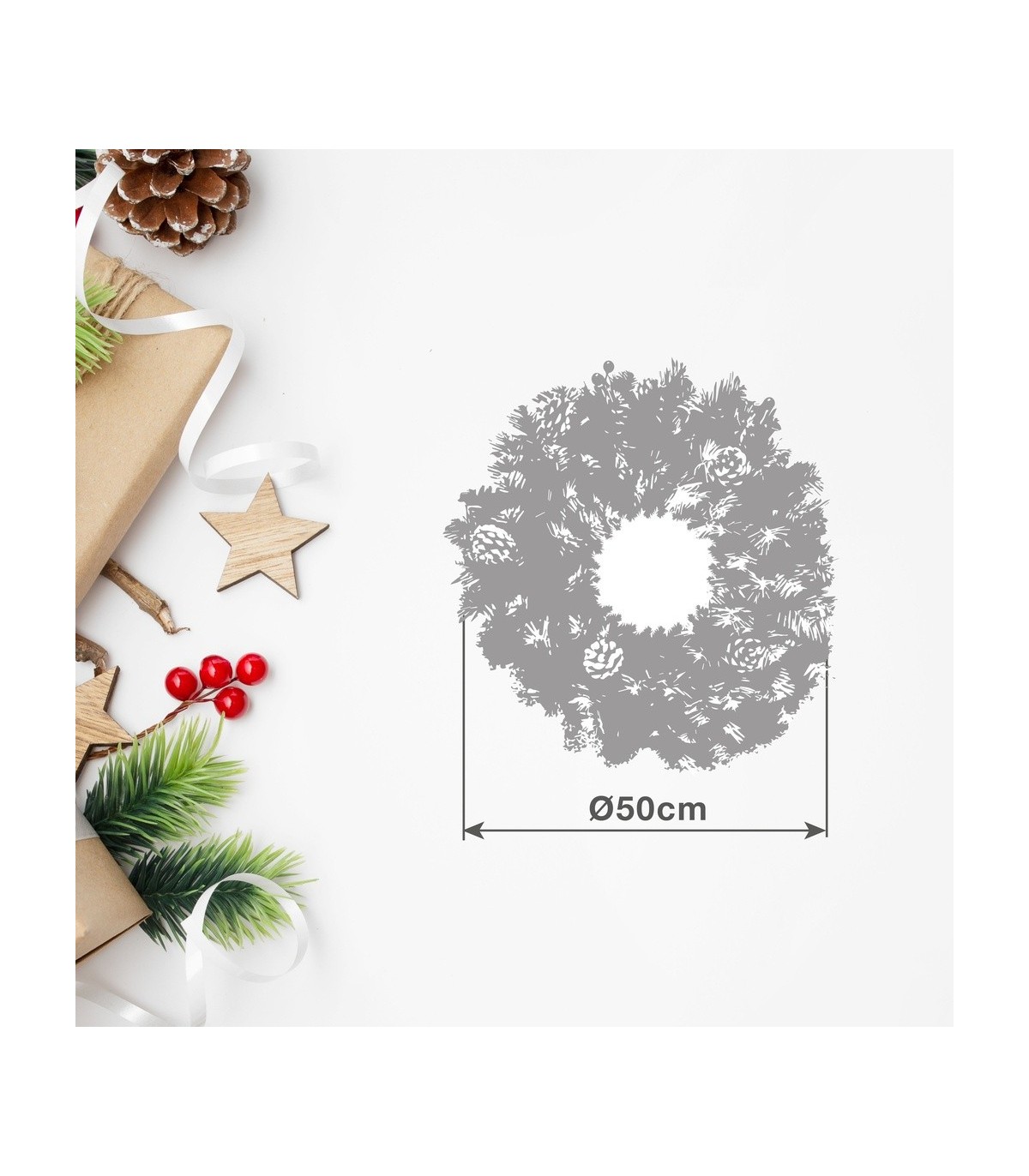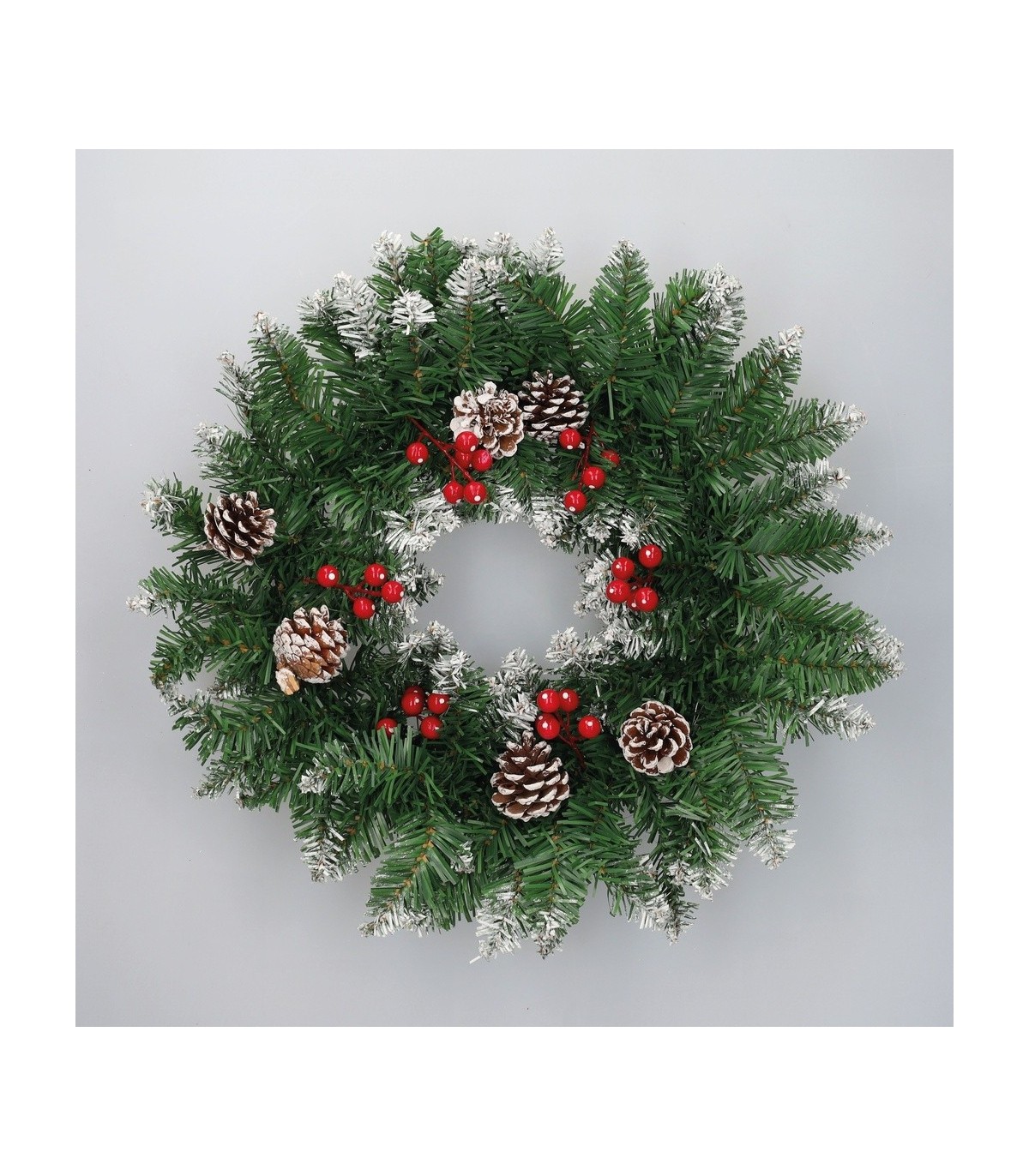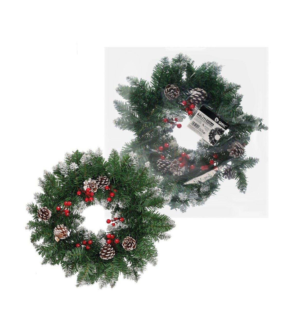 CORONA DE NAVIDAD EFECTO NIEVE CON ACEBO Y PIÑAS BALITI GSC