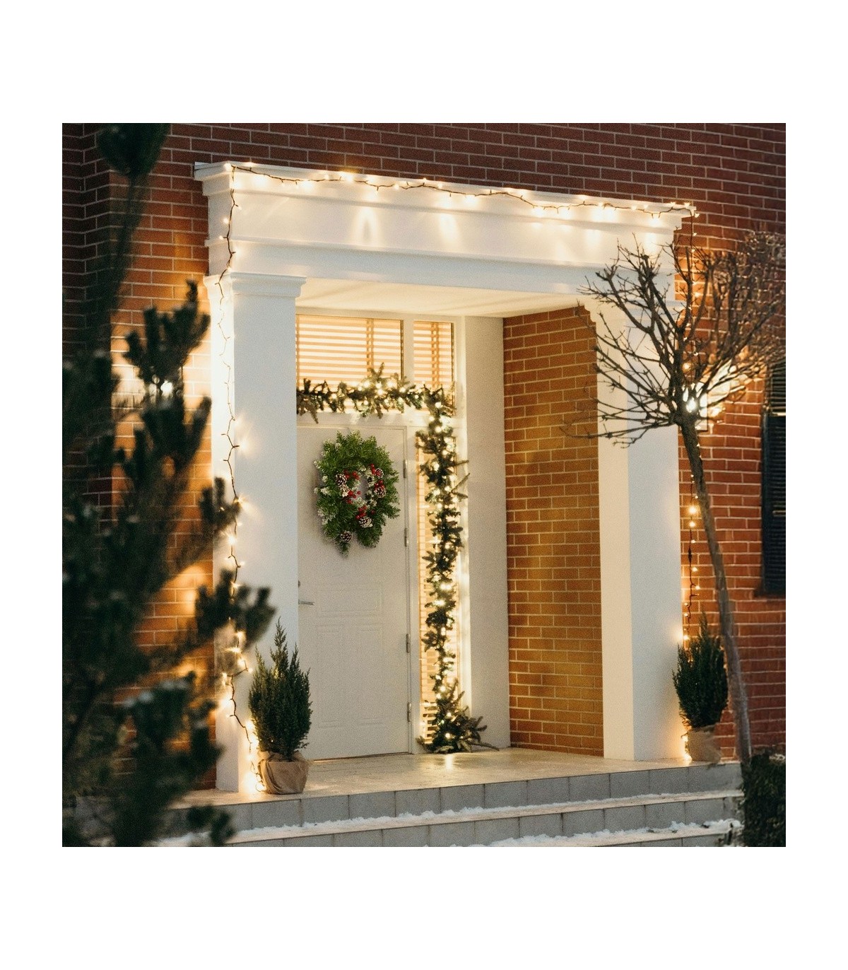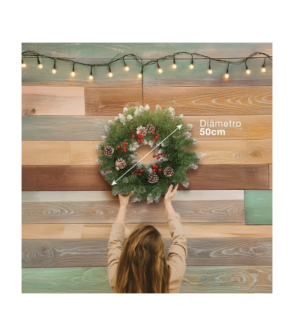 CORONA DE NAVIDAD EFECTO NIEVE CON ACEBO Y PIÑAS BALITI GSC Ø50cm 80 RAMAS