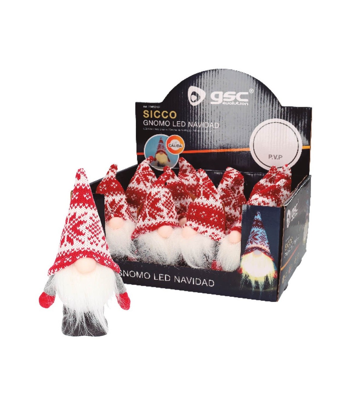GNOMO DE NAVIDAD LED DE PIE SICCO 16cm GSC ROJO Y BLANCO