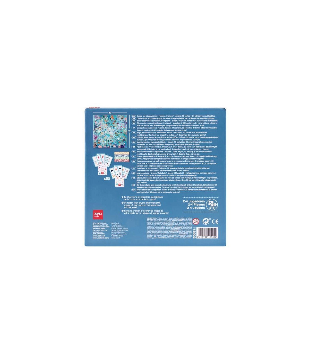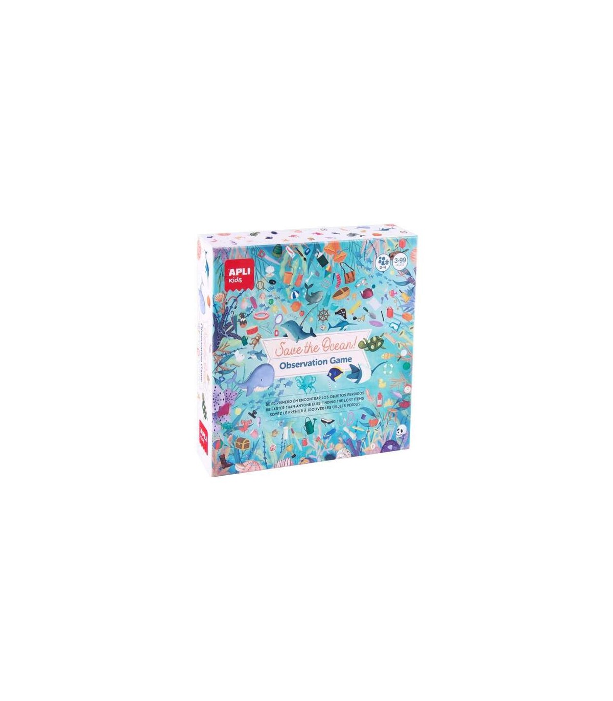 JUEGO DE OBSERVACION SAVE THE OCEAN APLI - 40 CARTAS Y 24 STICKERS - TABLERO 40x40cm