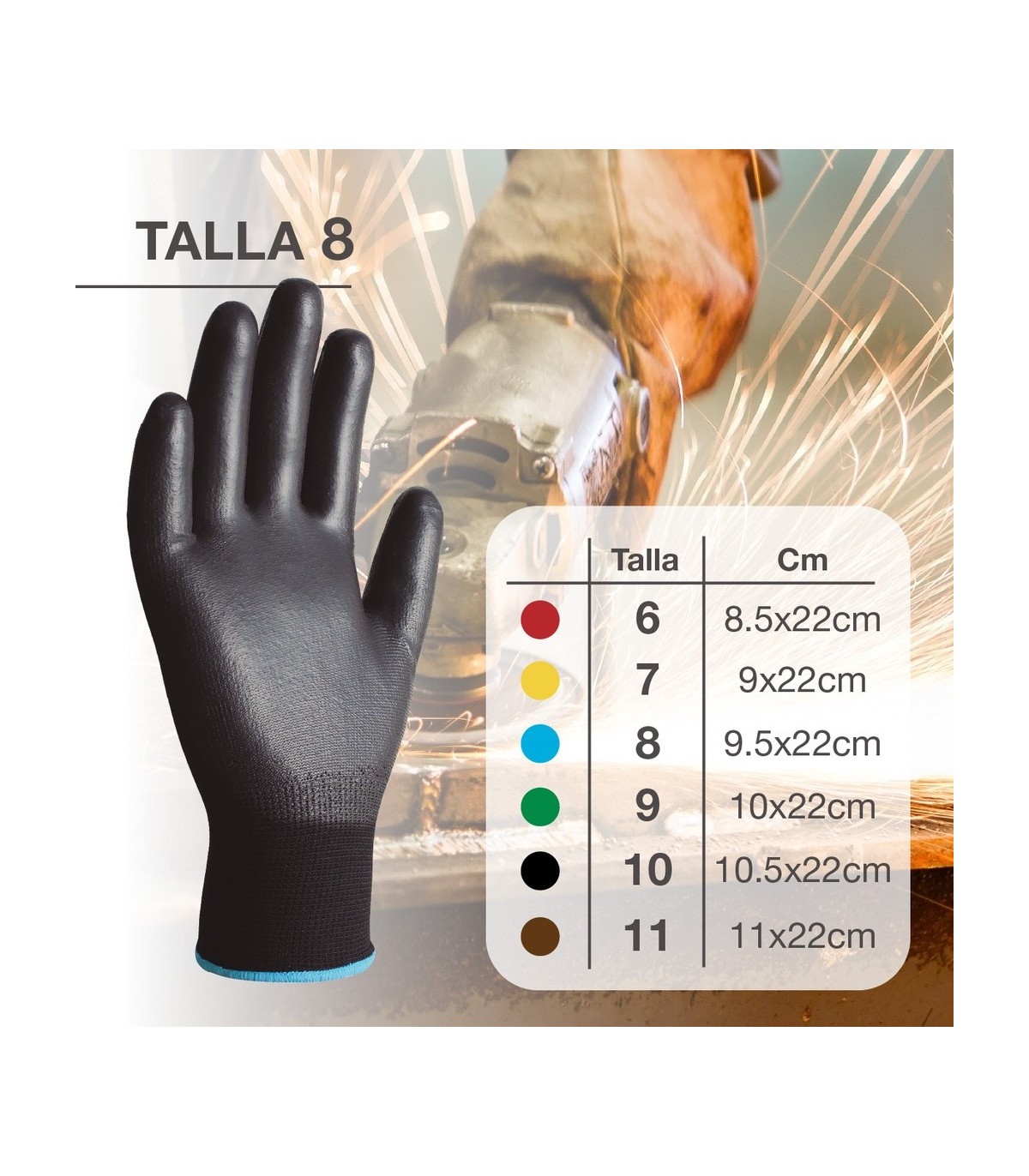 PAR DE GUANTES POLIESTER Y POLIURETANO NEGROS GSC - TALLA 8