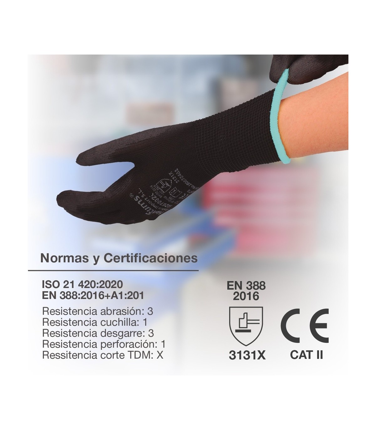 GUANTES POLIESTER Y POLIURETANO NEGRO