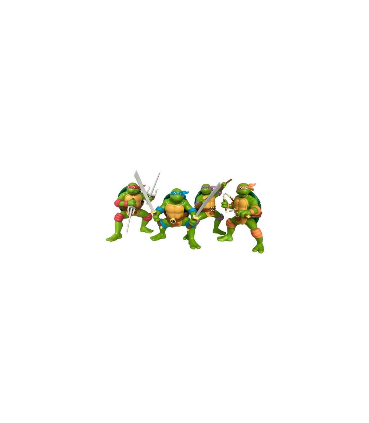 Set de figuras de las Tortugas Ninja, protagonistas de la popular serie Tortugas Ninja cuyo legado no ha pasado de moda entre sus cómics, series, películas y videojuegos. Estas figuras son ideales para fans de la nueva película de Tortugas Ninja, o aquellos fans nostálgicos de los noventa que siguen la historia desde sus inicios.