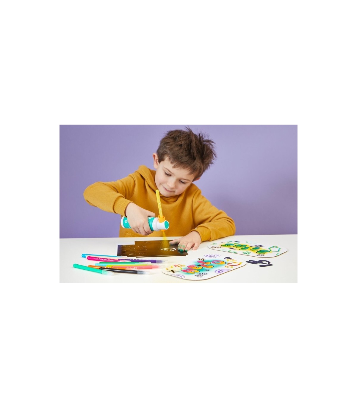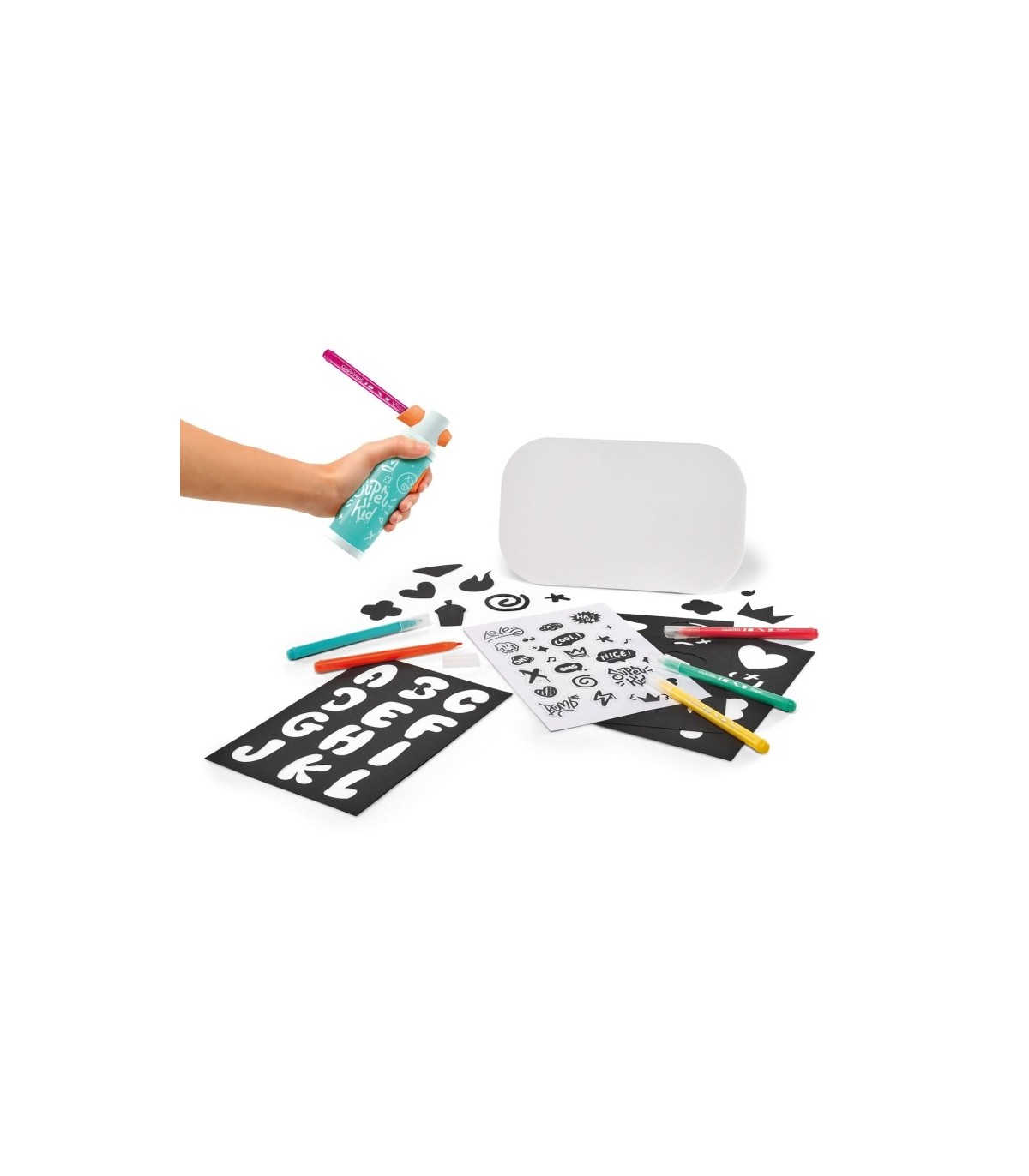 ¡Regala a tu hijo una experiencia creativa única con el kit Airbrush Maker! Este aerógrafo electrónico transforma los rotuladores comunes en una original herramienta de dibujo para crear increíbles efectos de grafiti. No necesitas soplar: simplemente inserta el rotulador en la punta, presiona el botón y el color se difundirá sobre la hoja. Este práctico y divertido sistema permite a los niños descubrir una nueva forma de colorear mientras desarrollan su imaginación.