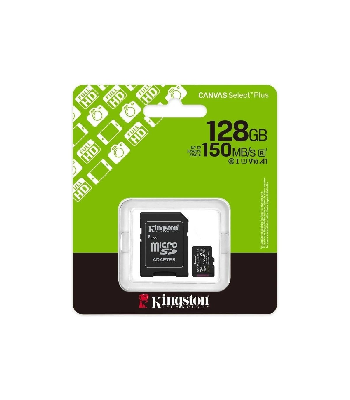 TARJETA MICRO SD XC 128GB + ADAPTADOR KINGSTON CANVAS SELECT PLUS - CLASE 10 - 150MB-S