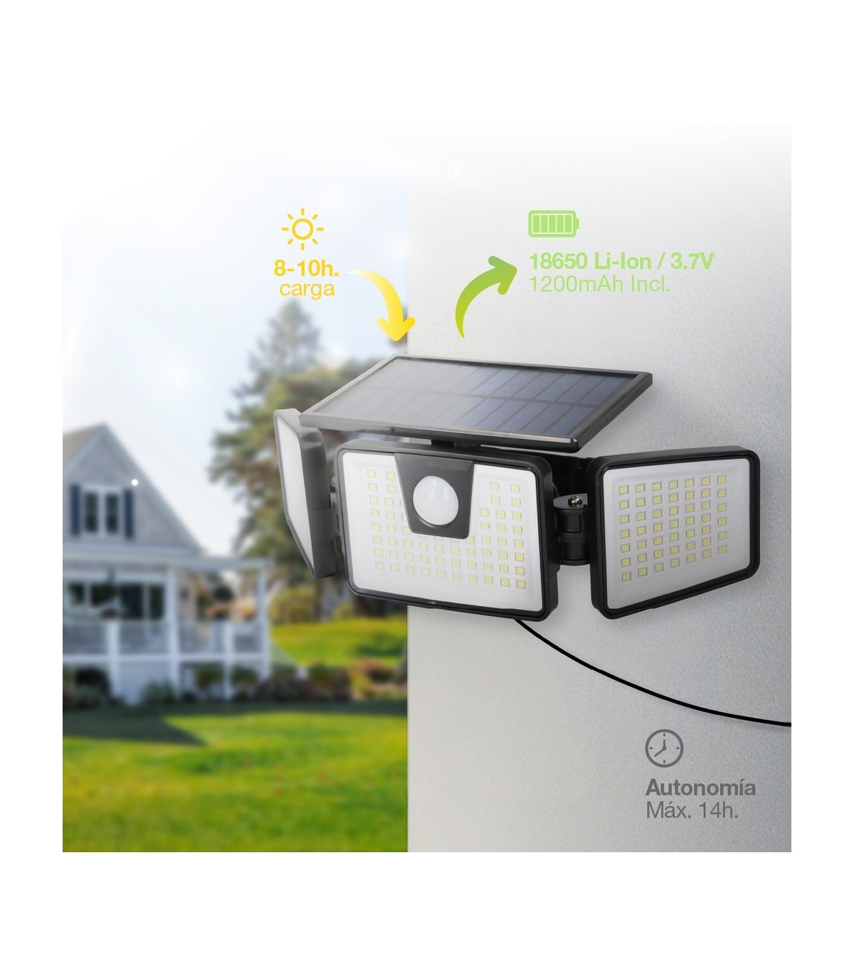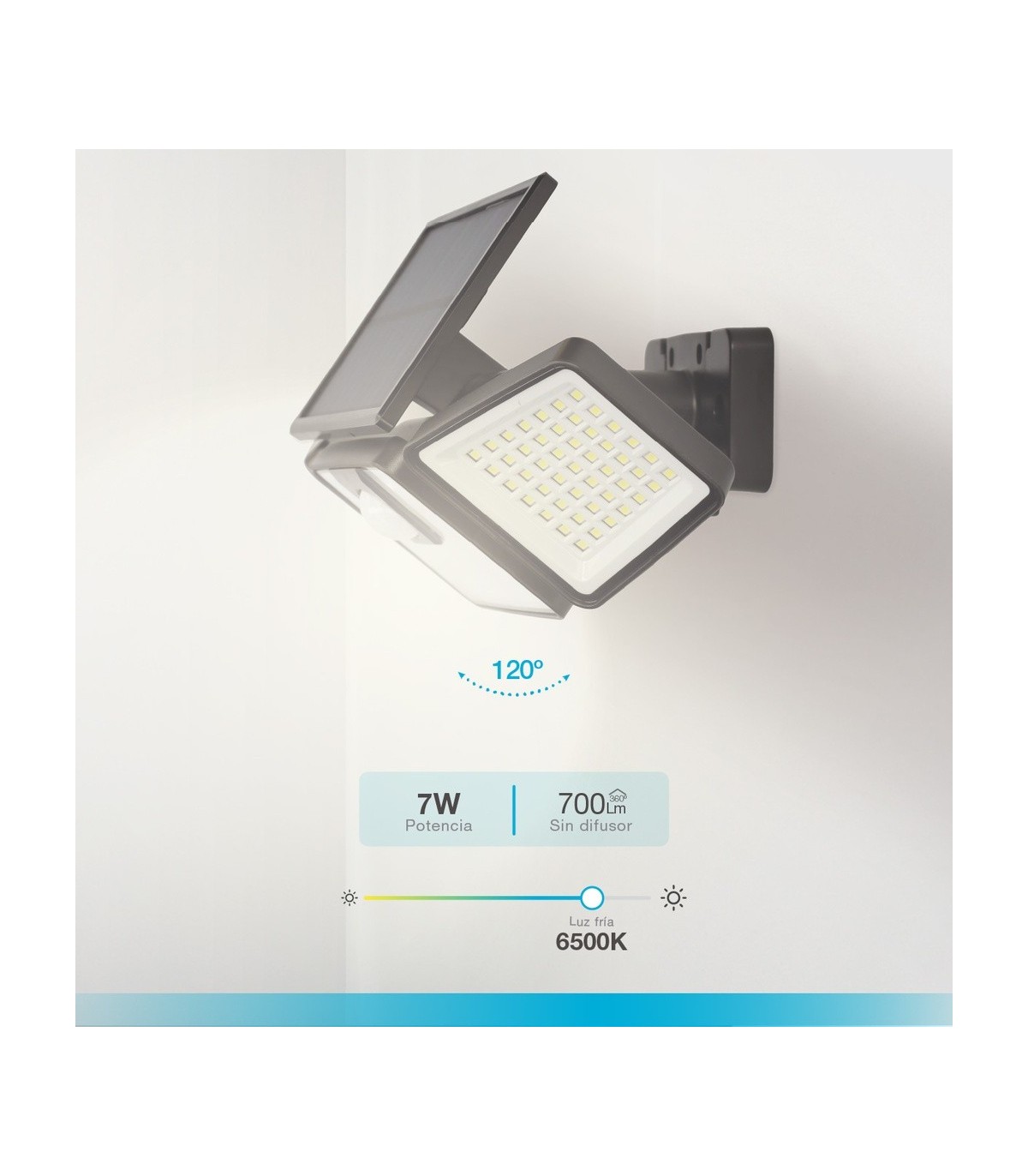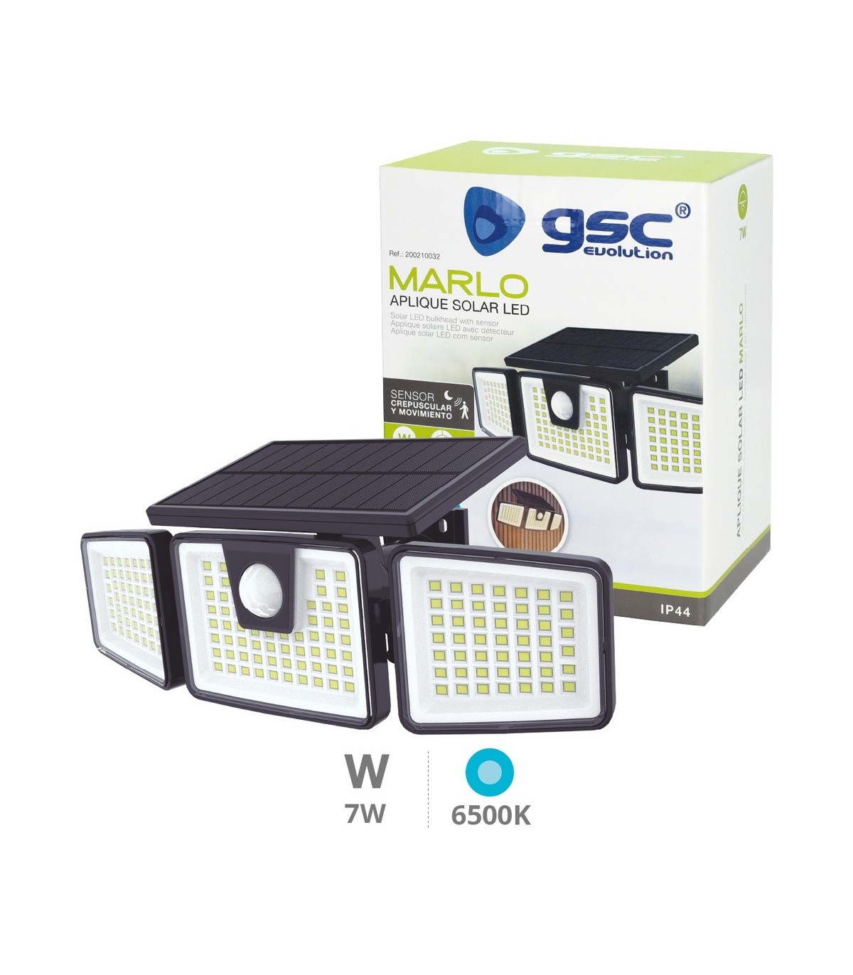 APLIQUE SOLAR LED ORIENTABLE MARLO GSC NEGRO 7W LUZ BLANCA 6500K 700 LUMENES - CON SENSOR