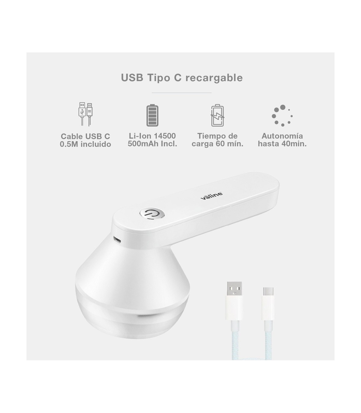 QUITAPELUSAS ELECTRICO ANDORI GSC RECARGABLE - COLOR BLANCO - PUERTO DE CARGA USB-C