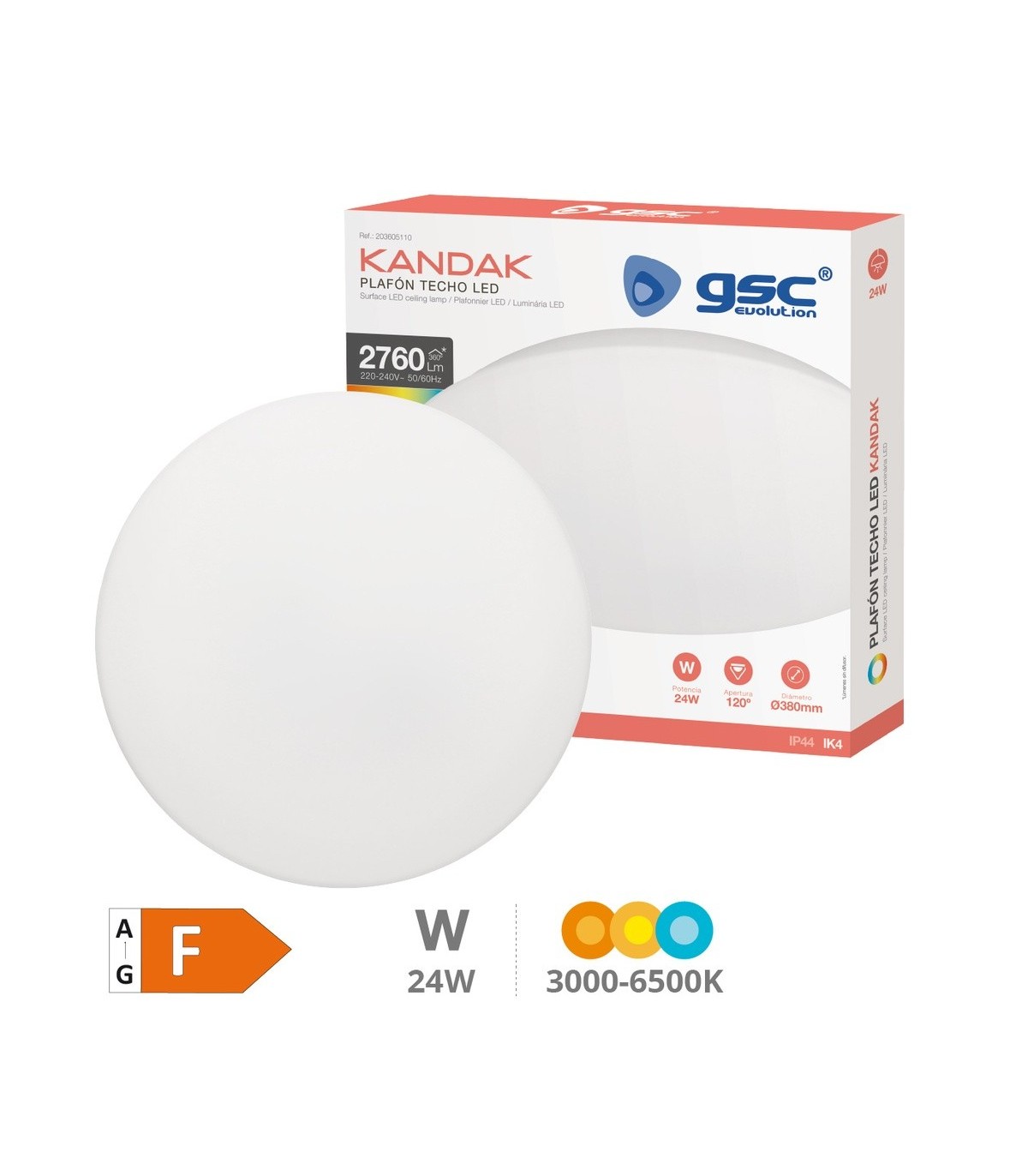 PLAFON TECHO LED REDONDO KANDAK GSC BLANCO 24W LUZ CCT 2760 LUMENES
