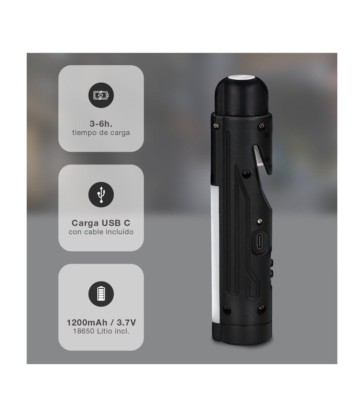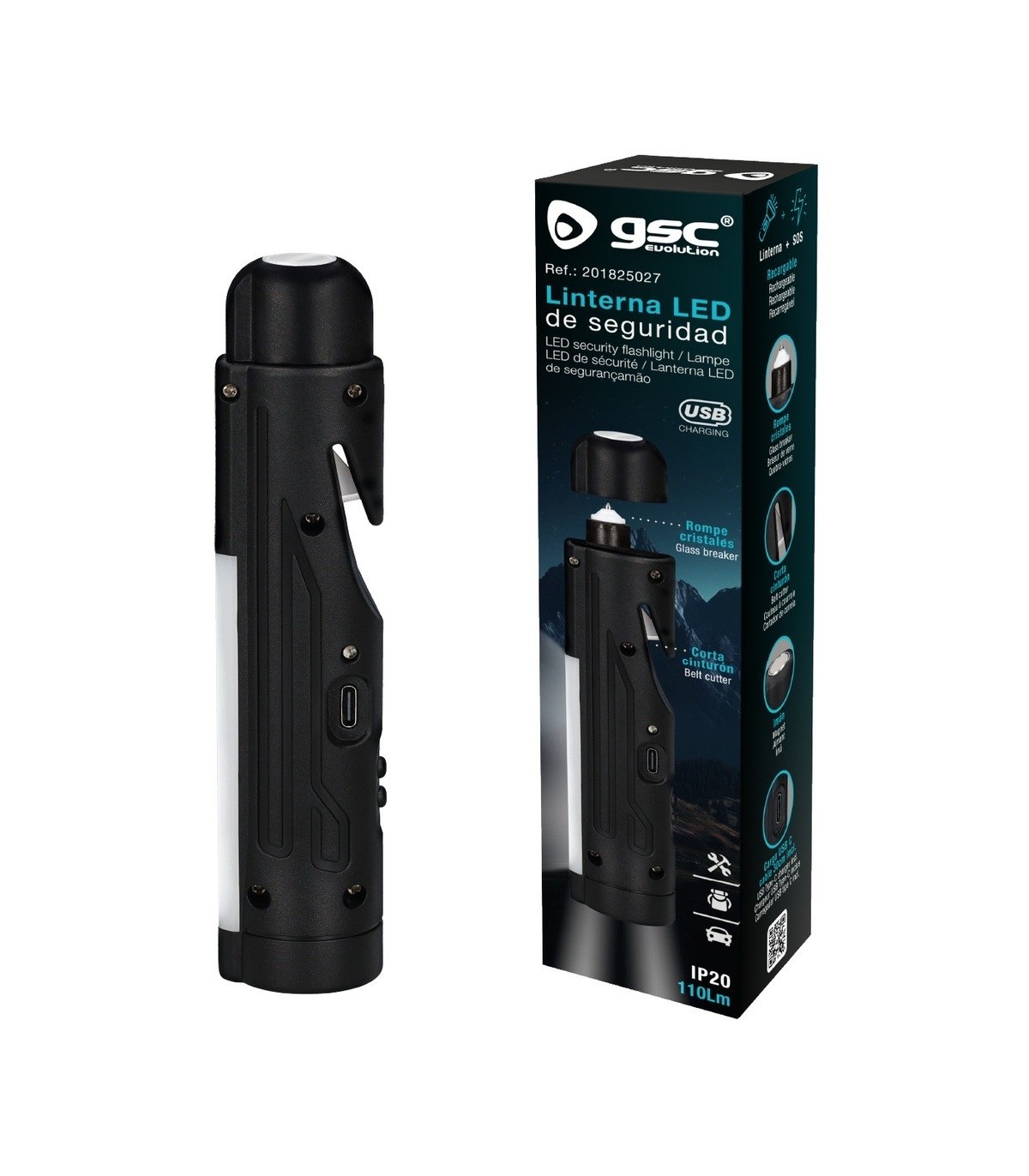 LINTERNA DE SEGURIDAD LED GSC 1 2W - RECARGABLE USB C - CORTA CINTURONES Y ROMPE CRISTALES