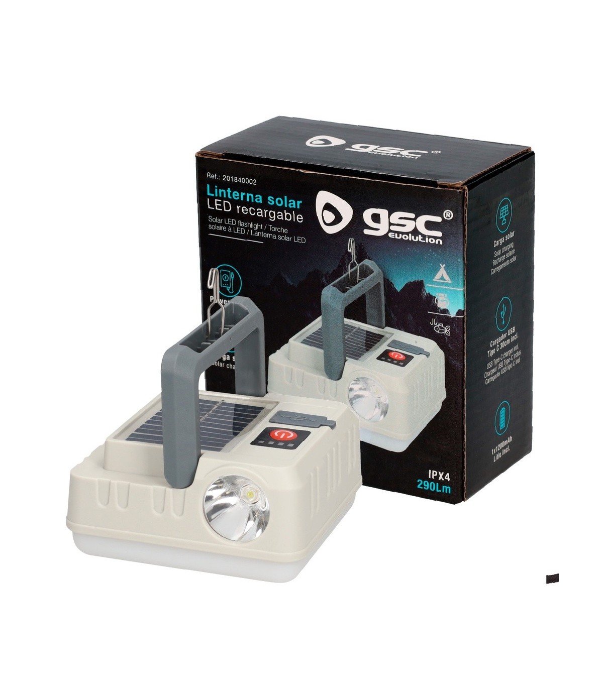 LINTERNA SOLAR LED RECARGABLE GSC 290 LUMENES - BATERIA 1.200 mAh
