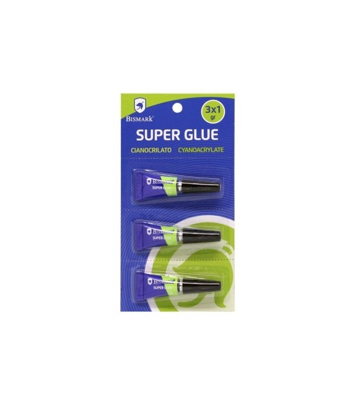 Medidas blister: 12,5 x 6,5 cm. Contenido: 1 gramo. Pegamento super adherente. Base de cianocrilato. Para pegar papel, cartón, tela, etc. El pack contiene 3 tubos de 1 gramo cada uno.
