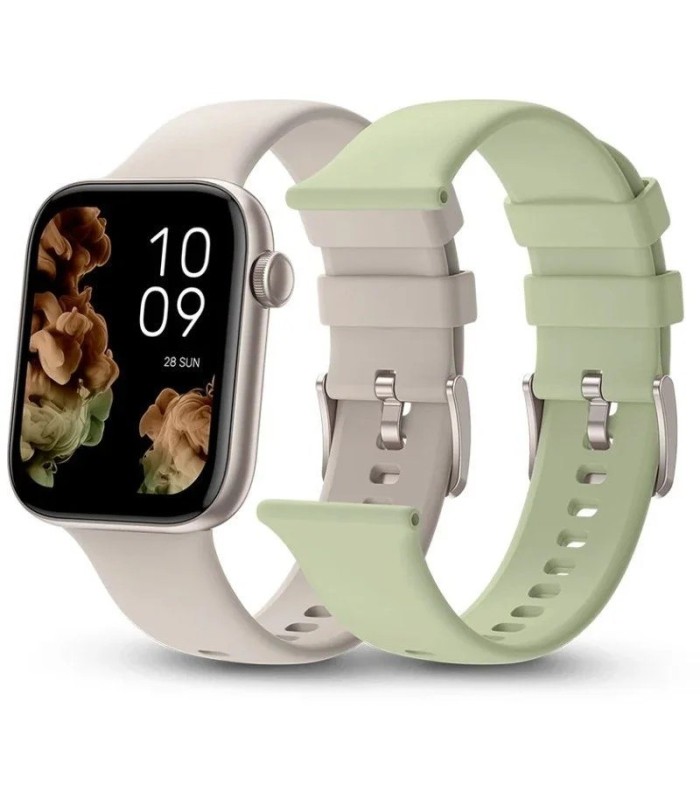 Smartwatch con pantalla amoled de 1,78”, llamadas Bluetooth, registro de más de 100 deportes, corona funcional y dos colores de correa para adaptarlo a tu look.