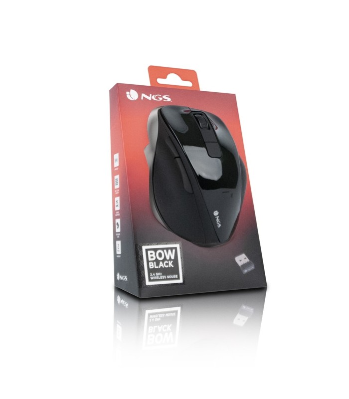 RATON INALAMBRICO NGS BOW NEGRO - 4 BOTONES - USB 1600DPI - USO DIESTRO