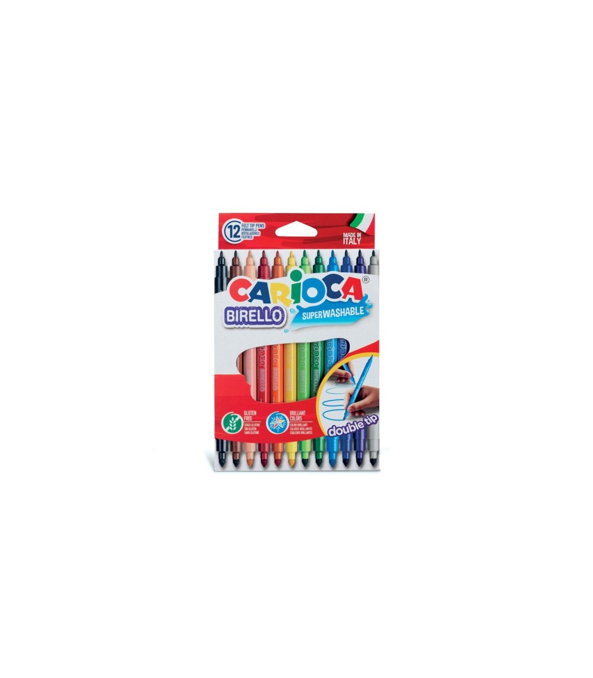 Carioca Birello Pack de 12 Rotuladores - Doble Punta Fina y Media - Tinta Superlavable No Toxica - Lavable de la Piel y Tejidos con Agua y sin Jabon