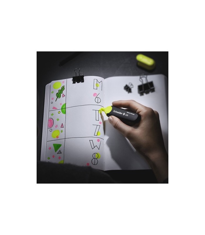 Resaltador con punta biselada 1+5 mm. Tinta rosa. La tinta de colores vivos sirve para papel normal, para fotocopia y fax, es resistente a la luz. Por eso, el resaltador Job es ideal para la escuela, la universidad o la oficina y, con su punta biselada, también es perfecto para el trabajo creativo en agendas o para la caligrafía en el handlettering. Por eso, el resaltador Job es ideal para la escuela, la universidad o la oficina y, con su punta biselada, también es perfecto para el trabajo creativo en agendas o para la caligrafía en el handlettering. El cuerpo está hecho de PP que no permite la evaporación de la tinta y el resaltador permanece fresco durante al menos 2 años. Recargable con el sistema de recarga Maxx 660 refill station. El resaltador inteligente con un rendimiento brillante ganó los premios de diseño iF y el red dot en 2013. El capuchón con clip es reversible. El gran contenido de tinta puede resaltar más que 15,000 palabras.