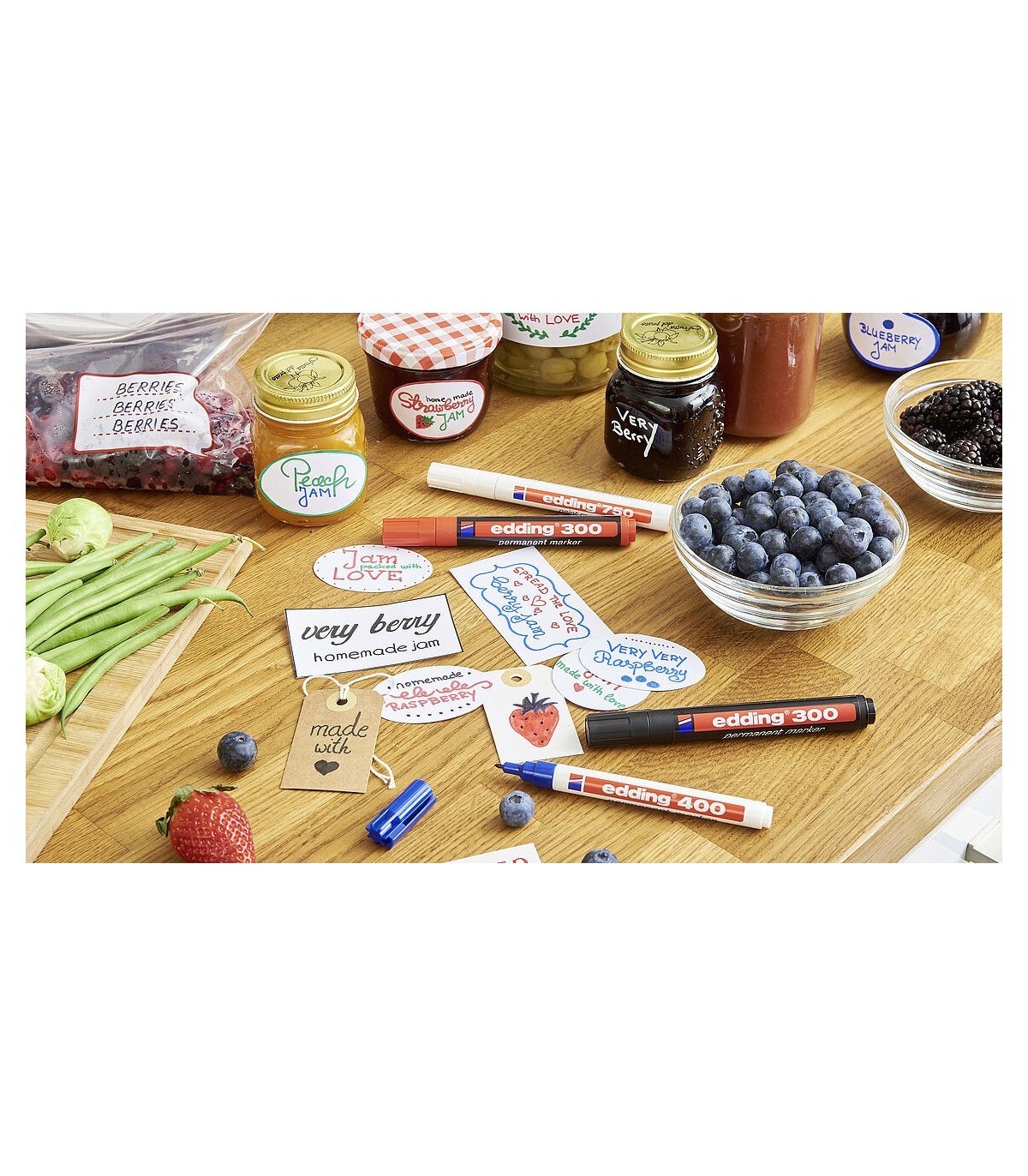 Si estás buscando una solución versátil para poder organizarte mejor las tareas domésticas del día a día, no te lo pienses más. Tanto si planeas rotular carpetas, fiambreras o botellas de cristal, el edding 300 marcador permanente va bien sobre casi cualquier material. Además, la punta redonda permite distribuir la tinta de manera uniforme. El práctico clip evita que el rotulador ruede y permite fijarlo a ropa y otros objetos.