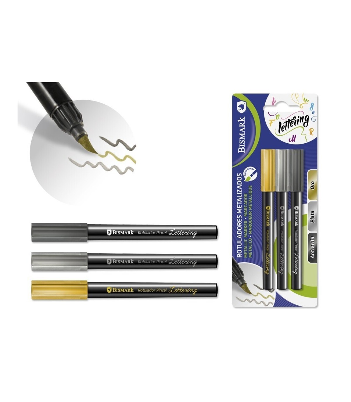 ROTULADOR METALICOS PUNTA PINCEL ORO-PLATA-ANTRACITA BISMARK