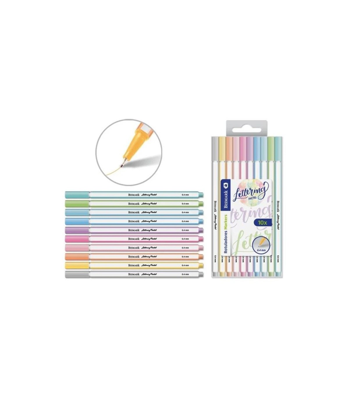 ESTUCHE ROTULADORES 10 UNIDADES PUNTA FINA 0 4mm LETTERING PASTEL BISMARK