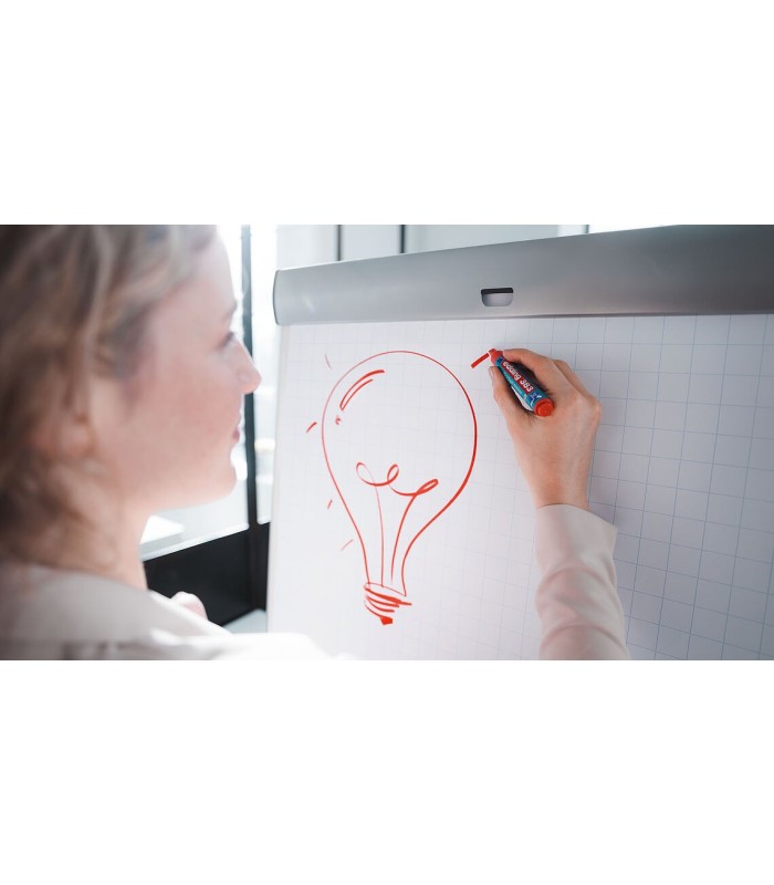 Marcador para flipcharts diseñado especialmente para la escritura y marcación sobre papel de flipchart, papel y tarjetas de moderador, así como otros tipos de papel El grosor de trazo de la punta biselada es de 1-5 mm Tinta inodora en colores brillantes que no traspasa el papel Gracias a la tecnología "cap-off", el producto no se seca aunque se deje sin la tapa puesta durante varias semanas (prueba climática según ISO 554) Artículo disponible en los colores negro, rojo, azul y verde El producto es rellenable con la tinta de recarga edding FTK 25 Contamos con puntas de recambio adecuadas (edding 32/383 puntas de recambio) Forma de la Punta: plumín de cincel Grosor de trazo: 1-5 mm Puntas de Recambio disponible Olor neutro Resistencia al Roce Secado rápido Tinta escpecial previene el sangrado a través del papel Rellenable Capuchón puede reposicionarse Tiene un Clip Antirrodadura incluida El capuchón puede guardarse en el extremo del cuerpo para evitar su pérdida El práctico clip impide que el marcador salga rodando y puede sujetarse a prendas y objetos Producto de marca de alta calidad Fabricado en Alemania