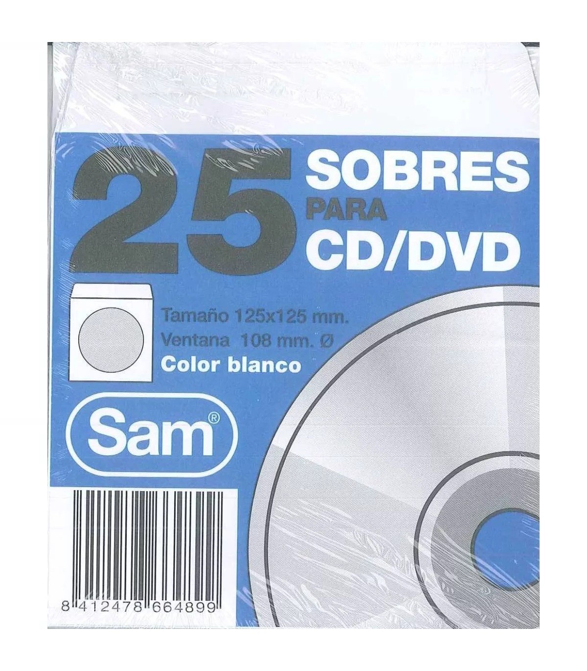 SOBRE PAPEL BLANCO SAM PARA CD 125x125cm PAQUETE 25 UNIDADES