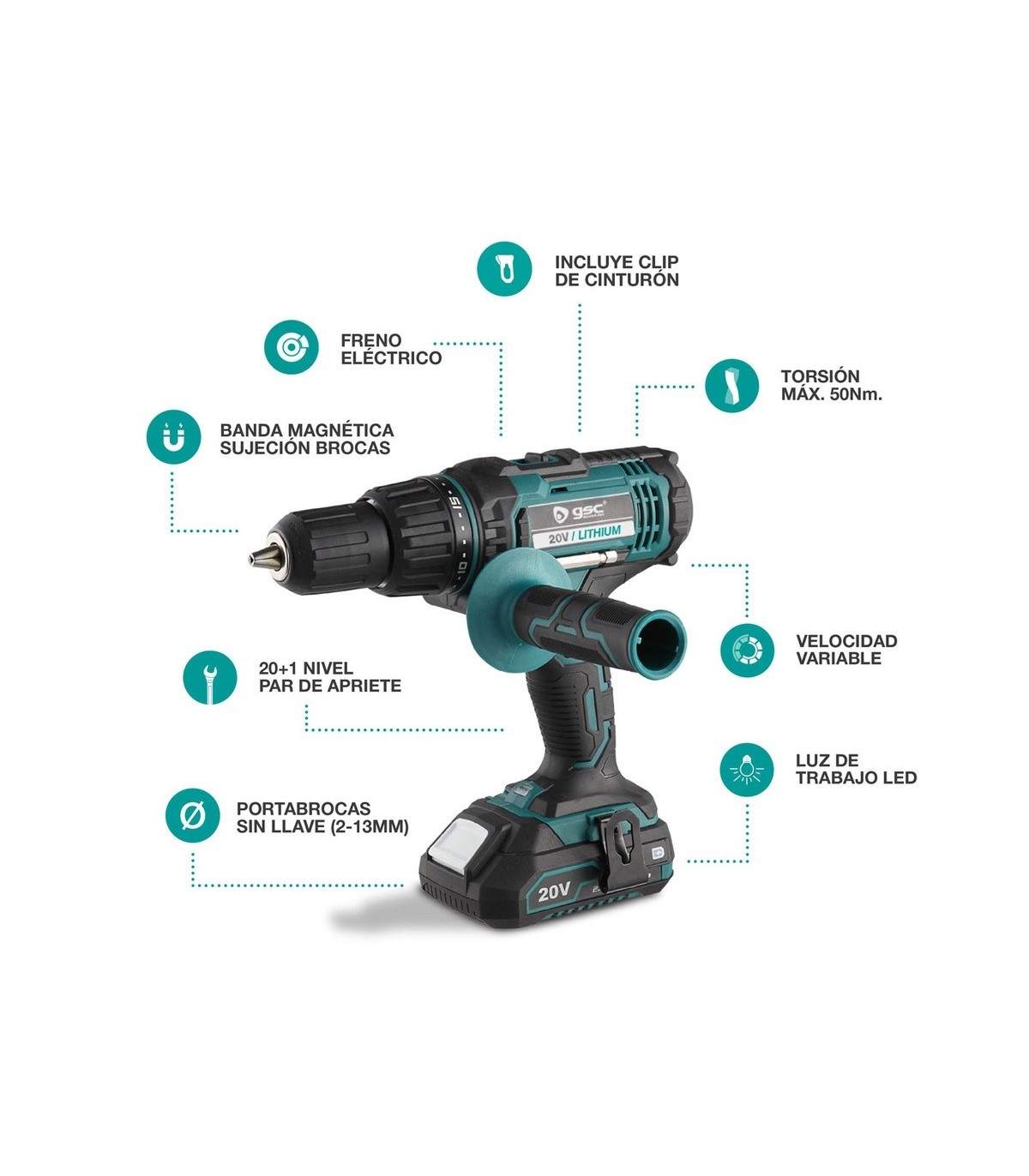 TALADRO DESTORNILLADOR - PERCUTOR INALÁMBRICO 20V GSC EVOLUTION