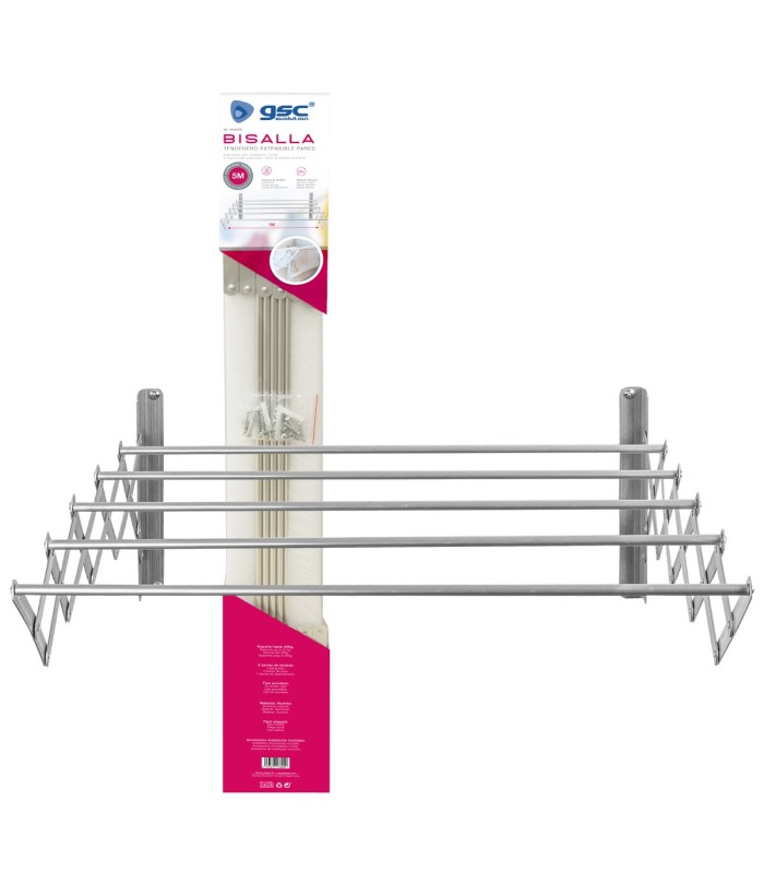 TENDEDERO EXTENSIBLE PARED BISALLA GSC 120cm CON 5 BARRAS DE TENDIDO