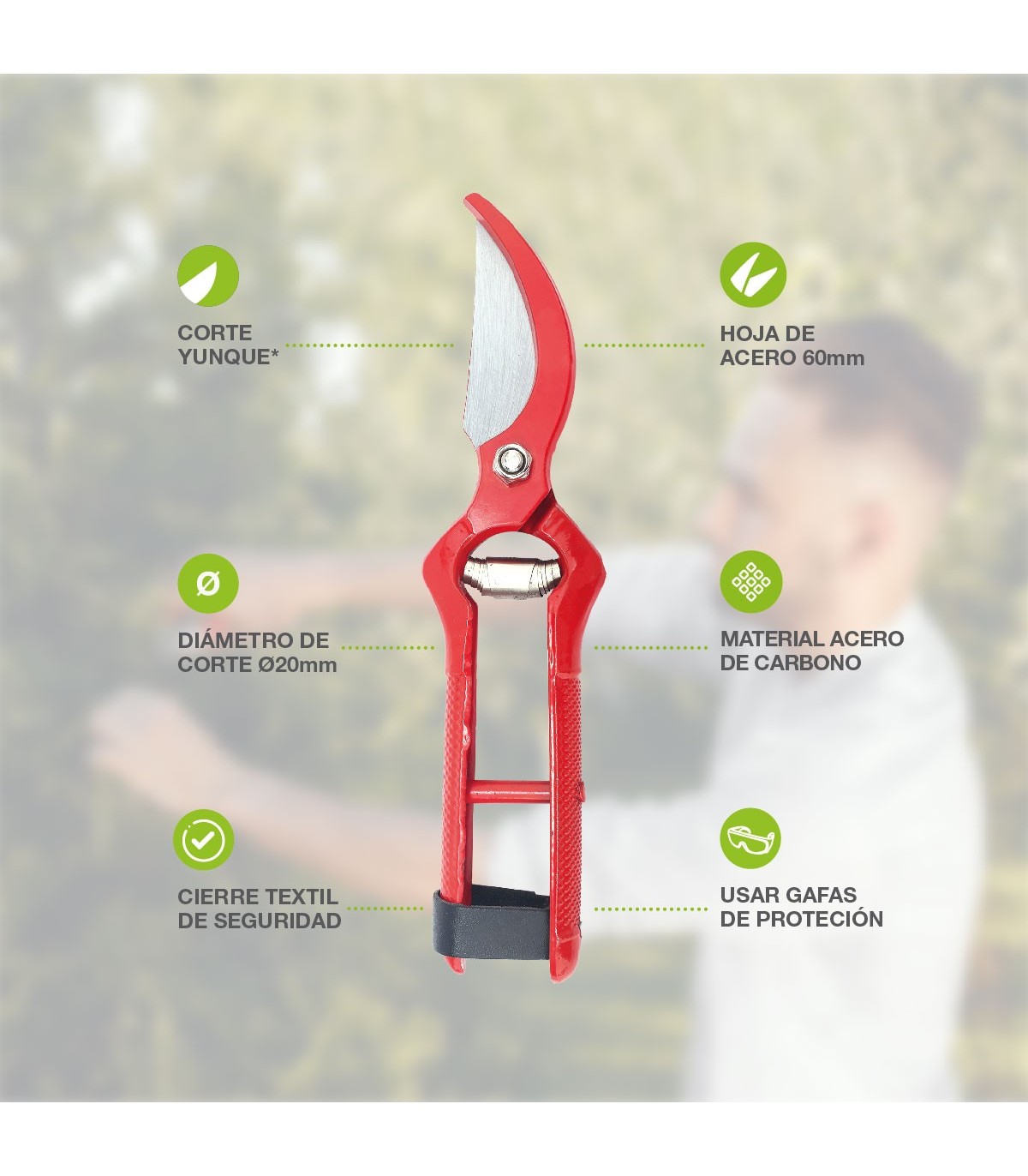 TIJERA DE PODA A UNA MANO CON HOJA DE ACERO 60MM GSC EVOLUTION - MATERIAL DE ACERO DE CARBONO FORJADO - CON MANGO - ANTIDESLIZANTE - IDEAL PARA RAMAS SECAS