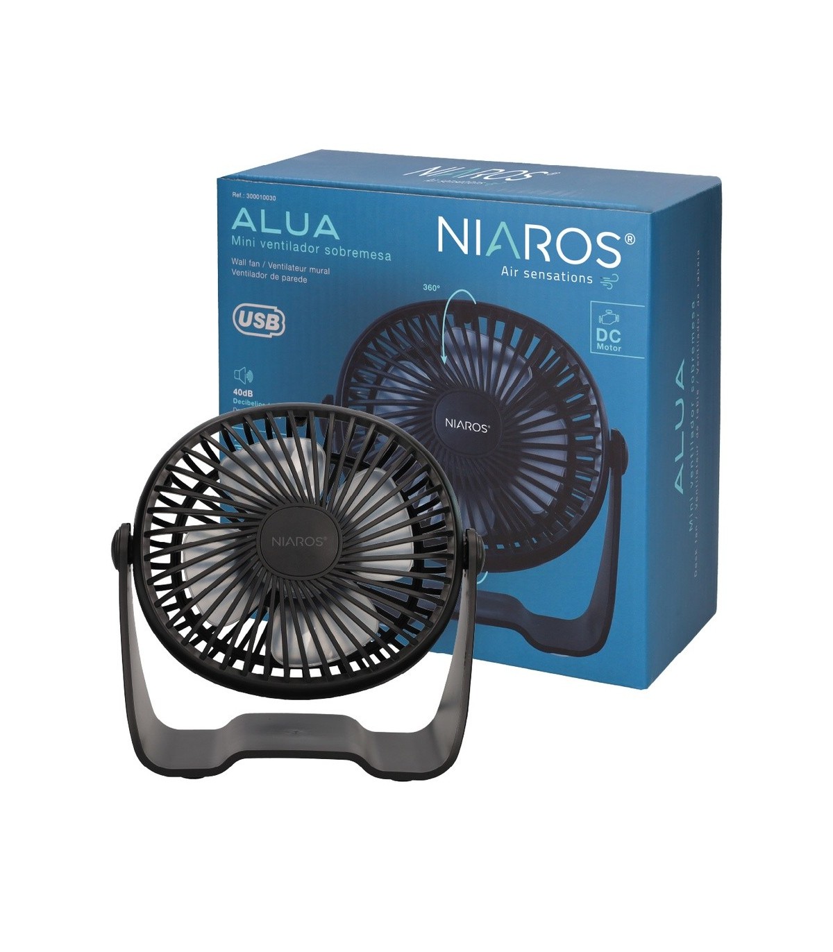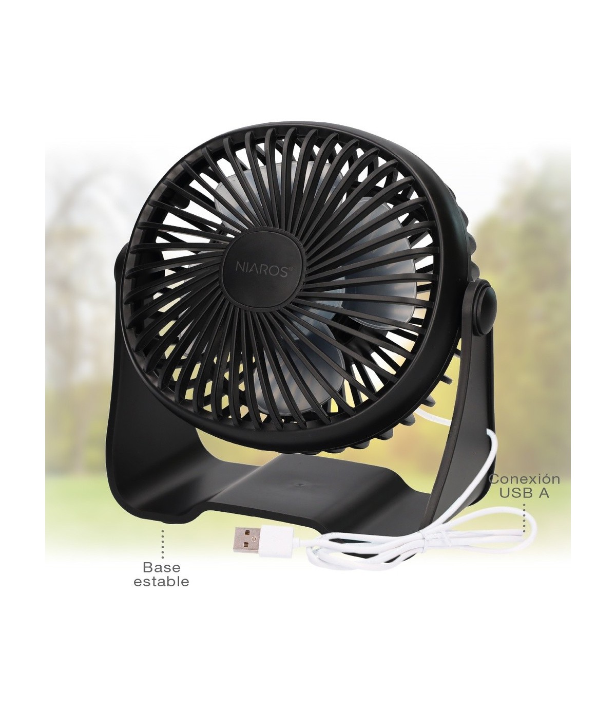 MINI VENTILADOR SOBREMESA CON USB ALUA GSC 3W Ø15cm NEGRO